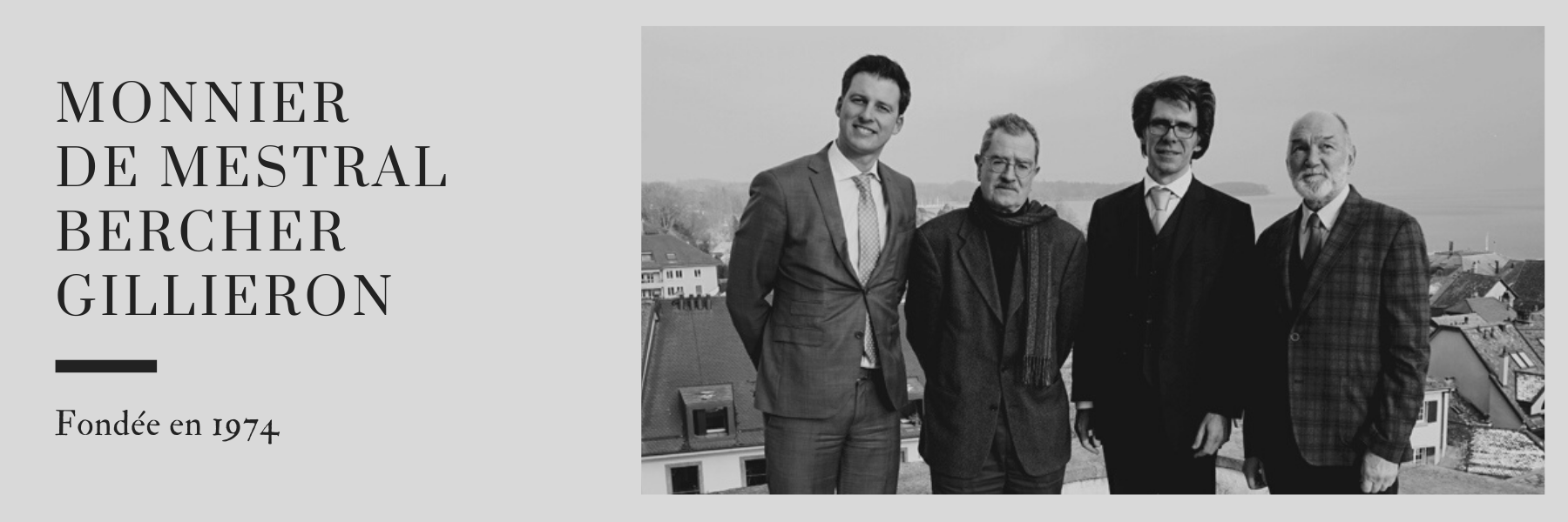 La fondation de ce qui est aujourd'hui le cabinet d’avocats MONNIER, de MESTRAL, BERCHER & GILLIERON remonte à 1974, lorsque Me Denys GILLIERON s'est installé à Nyon pour la pratique du barreau.